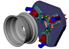 Ward Machine Tool's challenge is to design a dual-actuated/multi-range aluminum wheel lathe chuck. Virtual tests revealed actuator sizing and ping shearing requiring significant design rework. The problems were identified without any physical testing.