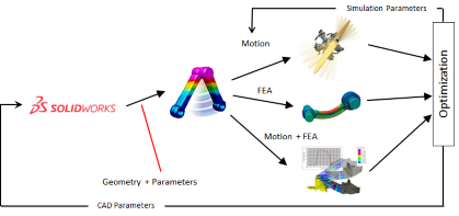 - Optimization allows SOLIDWORKS dimensions and variables along with simulation specific quantities to be used as optimization parameters and constraints. Multiple motion, FEA, or Motion + FEA simulations are run to allow a design objective like minimum weight or maximum speed to be achieved.