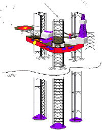 We used Working Model to analyse the effect on the legs by simulating the rolling motion of the transportation barge, said Dr. Smith. Using the Working Model Workspace, Dr. Smith sketched the key elements of the jack-up mechanism. This was done by using the mouse to click on a menu of items that construct the basic elements for any motion simulation, including springs, rods, actuators, dampers, pin joints, rigid joints and polygons. To generate as realistic a simulation as possible, Dr. Smith had to model a leg as a flexible body, not as one rigid structure.